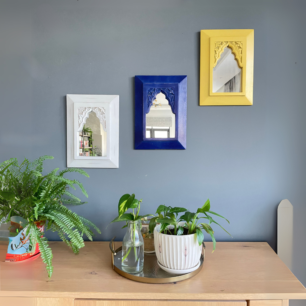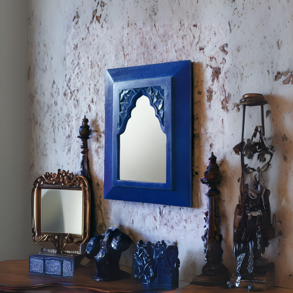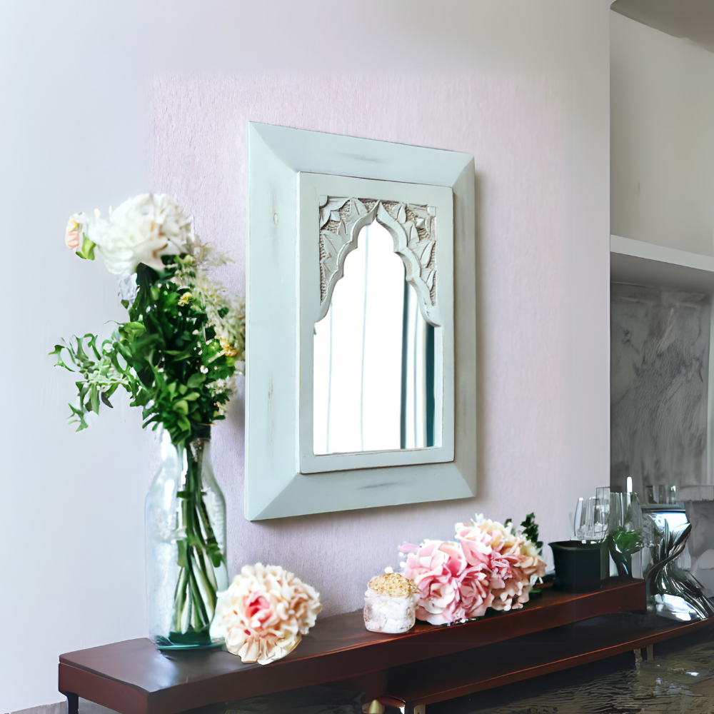 Elevate your decor with our handcrafted wooden carved wall mirror. Meticulously designed, this mirror combines craftsmanship and artistry, featuring intricate wood carvings that add a touch of sophistication to any space. Reflecting both style and elegance, it effortlessly enhances your wall, becoming a timeless centerpiece in your home. Available in a variety of colors to suit your home decor preferences and style.